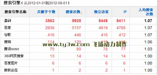 關(guān)鍵詞來源統(tǒng)計(jì)分析 太原某站 2012年前8個(gè)月的搜索統(tǒng)計(jì)結(jié)果