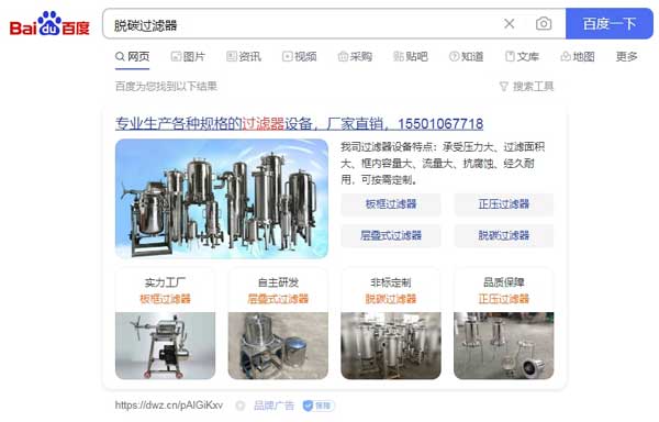 搜索結(jié)果首頁首位品牌廣告位,全天24小時高級大卡樣式展示。
